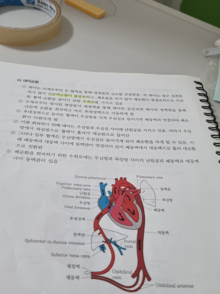 사진 처럼 위 내용에 3번 끝엔 폐순환이 이루어지게 된다는데 6번 시작 문구에 폐순환 회피위한 이란 문구가 나오는데 태아는 폐순환을 안하는건가요?