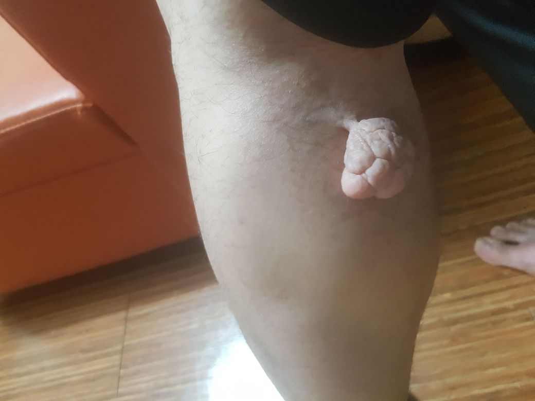 안녕하세요. 다리쪽 뒷쪽에 오랫동안 방치해둔 큰쥐젖이 하나 있는데 이거 때문에 반바지입기도 창피하고 그러한 상황입니다