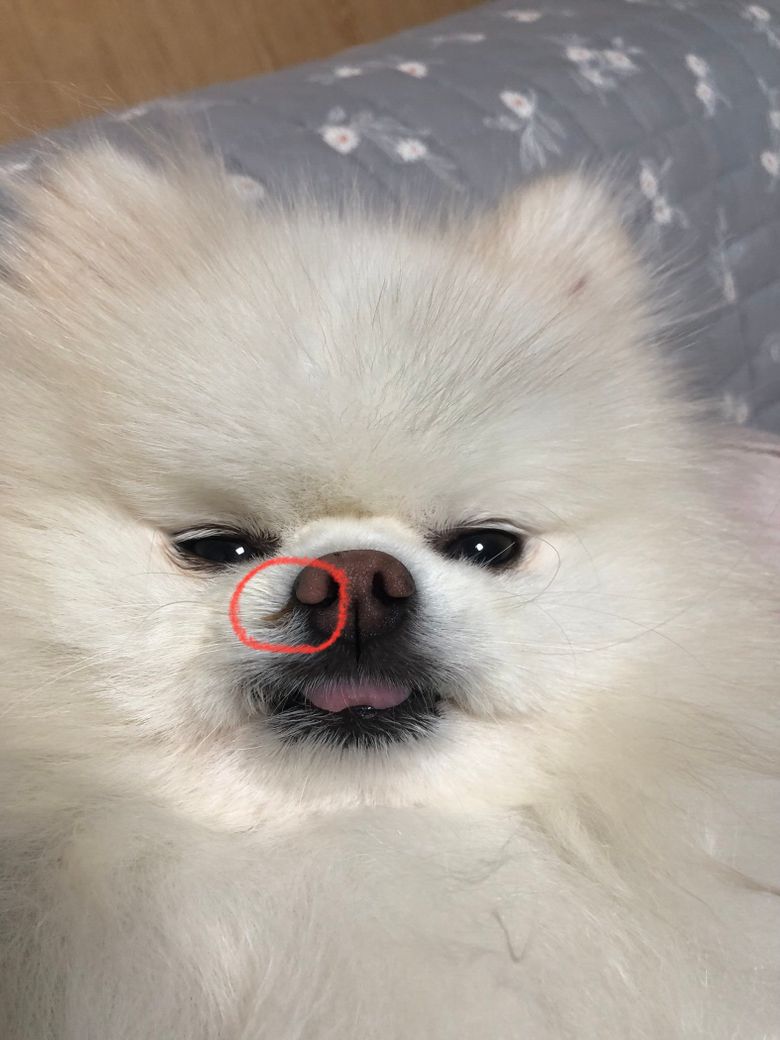 강아지가 일년 전부터 유독 오른쪽 코로(사진상 왼쪽) 콧물을 많이 흘리기 시작했습니다ㅠ 이제 7살이고 어리지는 않으니까 변화인가 싶었고, 병원 3곳에서도 딱히 괜찮다고 했는데 오늘 보니까(2번째사진) 동그라미 친 부분이 부은건지 색이 벗겨진건지? 평소와 다르네요ㅠㅠ 딱히 신체적인 증상은 없는데 어떤 문제일까요.. 좀 더 두고 봐야할지 병원에 가야할지 모르겠어요