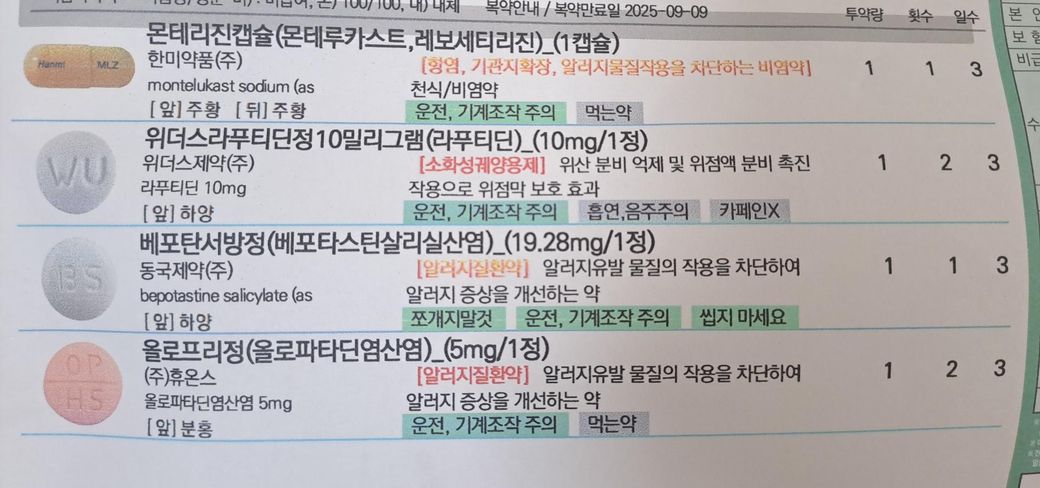 첨부된 첫번째 사진의 항히스타민제 처방 받아 먹고있는데 첨부된 두번짜 사진 비타민B군 같이 먹어도 되나요?