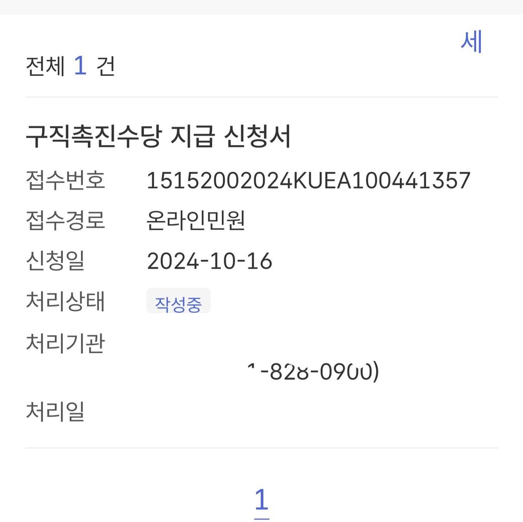 작성중에 1건이 표시 되는걸로 보아 재접수하셔야 할것같습니다. 신청서가 제출되면 접수에 1건이 나와야 맞습니다. 작성 중인 것 수정해서 제출바랍니다.