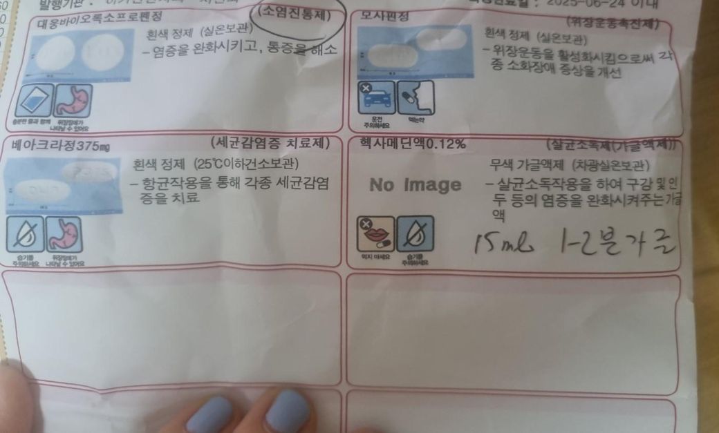 항생제(베아크라정 375mg), 소염 진통제/ 경구피임약(야즈정)