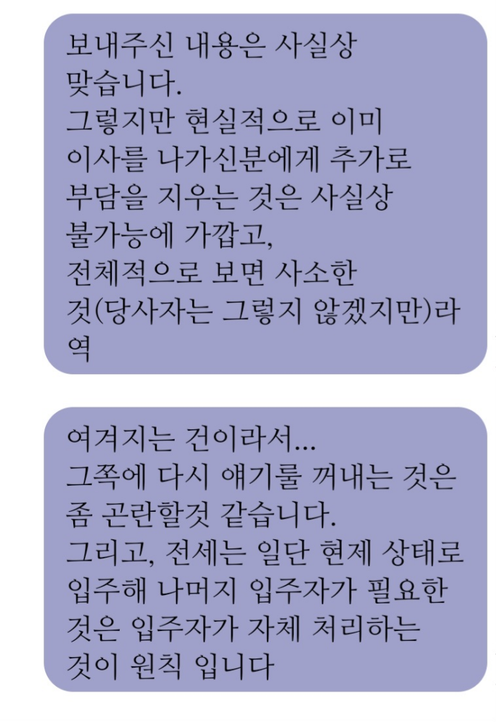 위 곰팡이 부분을 고려하여 계약한 것이 아니고 임대인도 묵비한 것이므로 위 보수비용에 대하여 임대인의 책임이 없다고 볼 수는 없습니다.