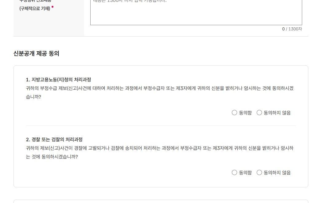 1. 실명 신고란에 신분공개 제공동의 라는 것이 있는데