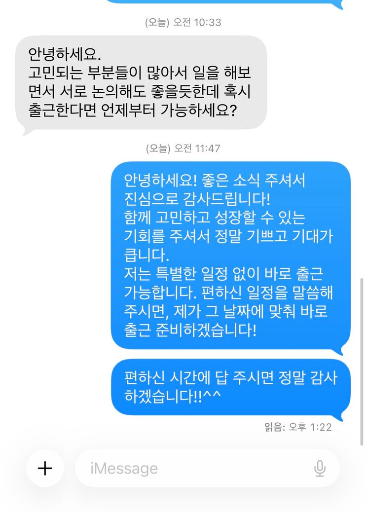 그래서 바로 출근 가능하고 출근 날짜 말해쥬시는대로 맞춰서 출근하겠다 그 뒤로 제가 답을 했어요 읽으시고 아직 답은 안오시는데 이거 진짜 합격 맞는 거죠.? 근데 읽고 답은 왜 오늘 아직도 없으신건가요..?ㅠ 괜히 불안해서요 아무일도 없겠죠 그리고 다시 답 오시겠죠 출근 날 조정하느라 답이 없으신 걸까요.. 설마 저 일 잘하는지 며칠만 보고 판단해보려고 그냥 잠깐 들러리로 불르려는 거였을까요.? 그건 절대 아니겠죠.. 너무 불안해서요 수습 기간 3개월 후 정규직 요즘 다 있ㄴㄴ 것처럼 이거 의미였겠죠.? 앞ㅇ로 계속 일해보잔 의미로 최종합격 맞죠 무조건!!