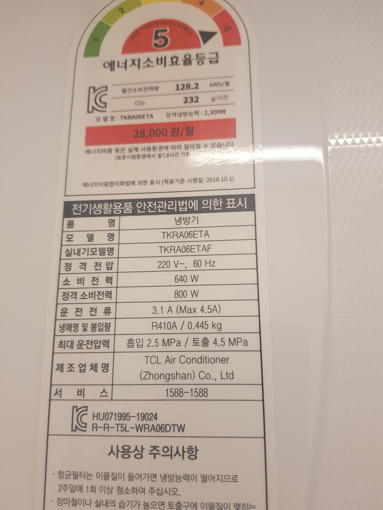 에너지 효율이 좋지 않은 것을 보아 정속형인 것 같지만 인버터일 가능성이 있습니다.