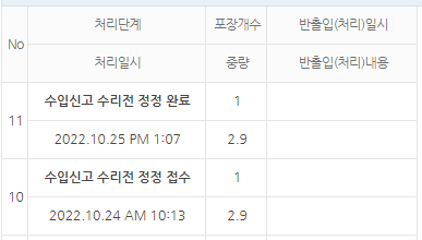 수리 후 반출 법정 기한은 15일 이내입니다만 보통 하루 이틀 안에는 반출 되긴 합니다.