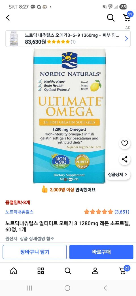ntg 오메가 3가 유기용매나 순도에서 조금 더 걱정을 덜수는 있지만 사실 rTG 오메가 3도 좋은 제품이기 때문에 함량이나 가격면에서 많이 차이난다면 rTG 오메가 3를 선택하는것도 좋은 선택이 될 수 있습니다.