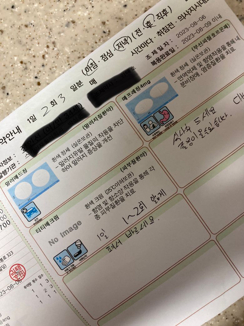 현재 복용 중인 약은 알러지, 과민반응을 억제하는 항히스타민제와 염증을 가라앉히는 스테로이드성 소염제입니다.