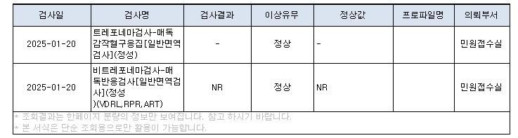 음성이라는 말입니다. 매독검사에서 이상소견 없음에 대해 결과설명이 있네요. 답변이 도움되었기 바랍니다. 감사합니다.