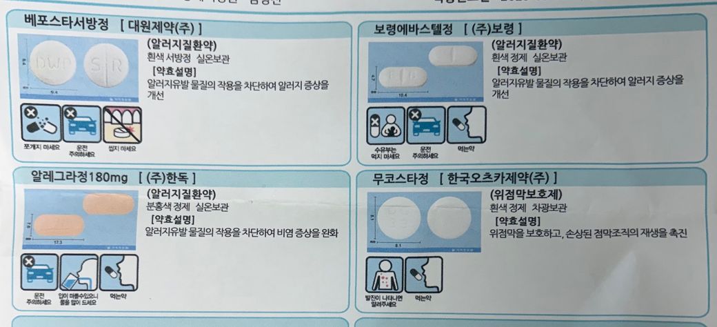 제가 장기적으로 알러지약을 먹고 있는데, 오늘 발치를 해서 항생제랑 진통제를 처방받았습니다. 3일분인데 이걸 같이 먹어도 되는지 시간을 두고 먹어야하는지 궁금합니다. 그리고 위장약이 겹치진 않는지 답변 부탁드립니다.