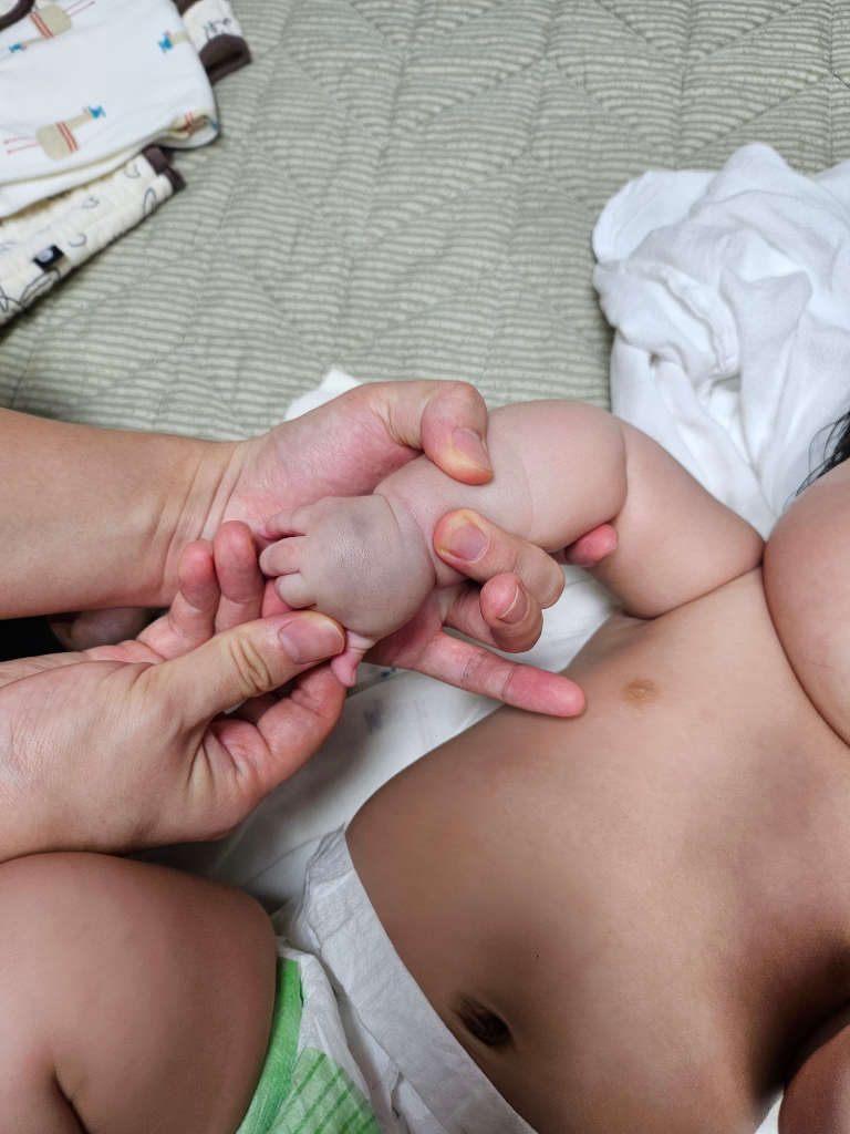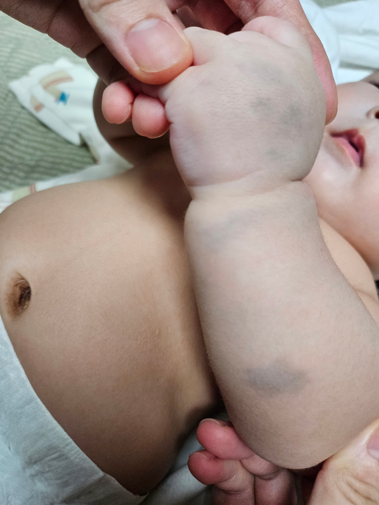 몽고 반점의 가능성이 생각됩니다.