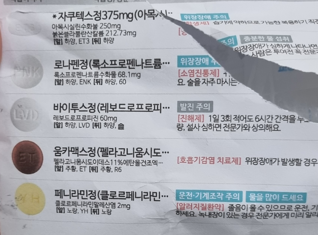 합니다. 살펴보니 진통제가 든 것 같더군요