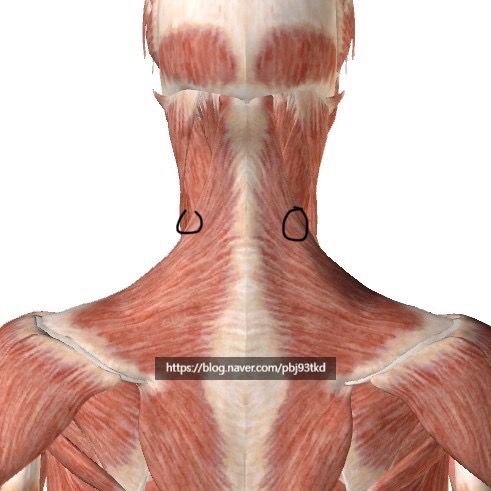 주로 견갑거근 혹은 승모근이 지나가는 부위입니다.