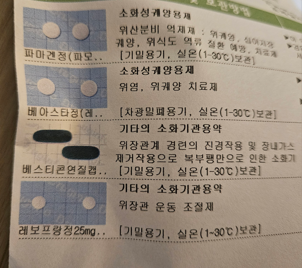 아래 약에서 라토딘정과 파마겐정이 겹친다고 보시면 되고, 두 약을 같이 복용하시는건 라토딘정만 제외하고 복용을 하시면 되겠습니다.