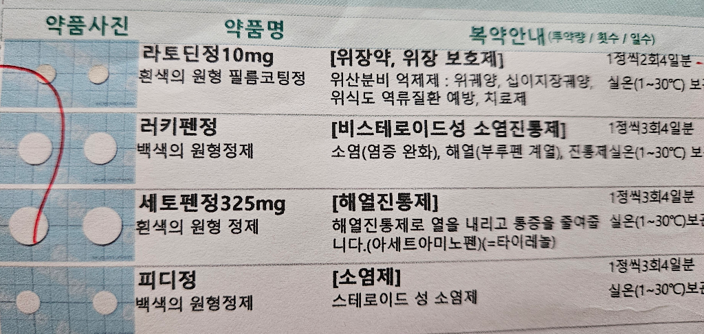 이미 라토딘정이 들어있는 약을 드셨다면 아래 약들중에서 파마겐정은 빼고 드시는 것을 추천드립니다