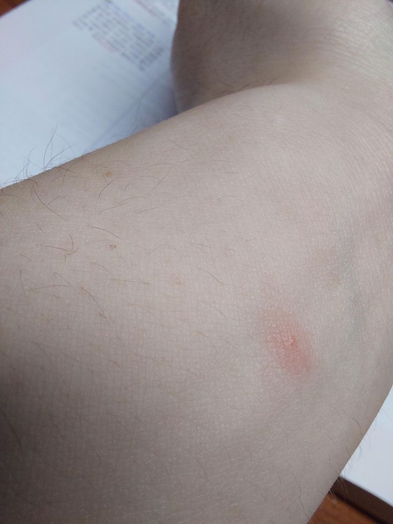 피부에 작은 발진이 보입니다만 물린자국만 보고서는 뭐에 물렸는지 예측하기는 힘듭니다 버물리 연고 발라주세요