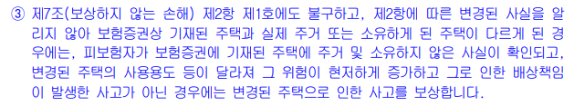 기존 집에 주거 또는 소유하지 않은 사실이 확인되고, 변경할 주택의 사용용도가 안달라져서 위험이 현저하게 증가하지만 않는다면 바꾼 집으로 보상한다고 되어 있는데...