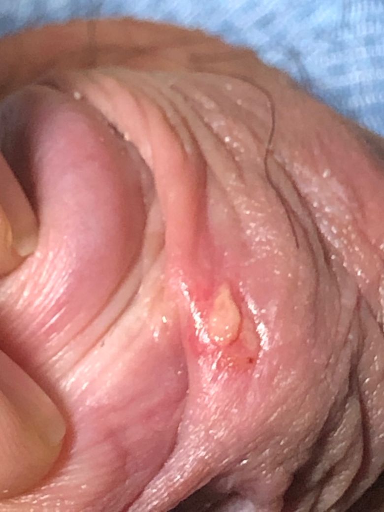 아직 염증이 심해 보이진 않으나 청결하게 관리하며 항생제 연고를 바르며 경과를 지켜보고 증상이 심해진다면 비뇨기과를 방문하기 바랍니다.