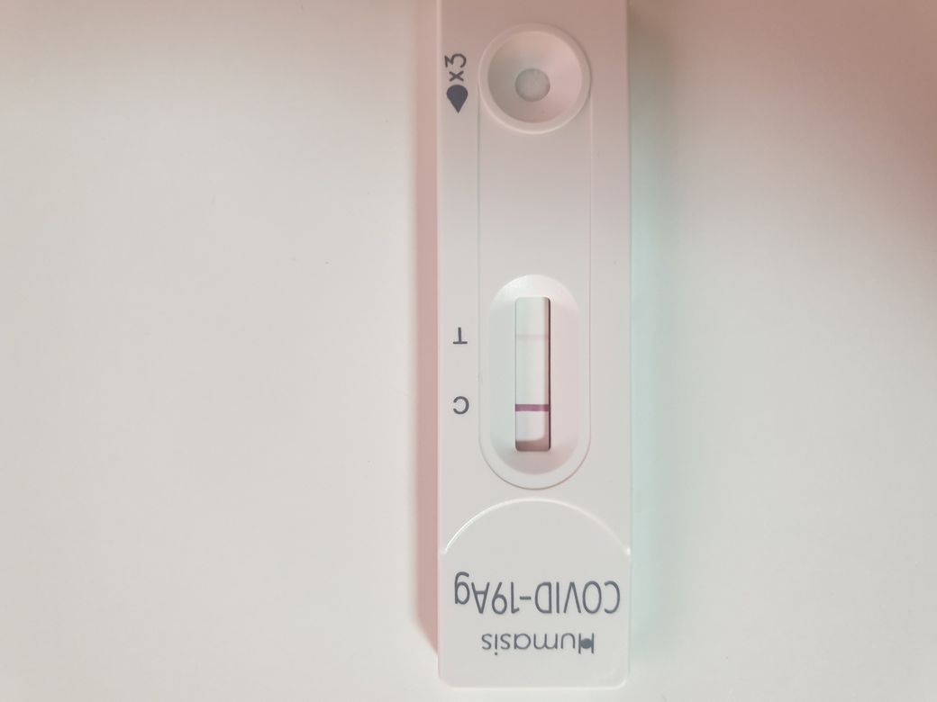 자가검사키트 양성으로 보입니다. 확진은 아니므로 PCR 검사를 받아보아야겠습니다.
