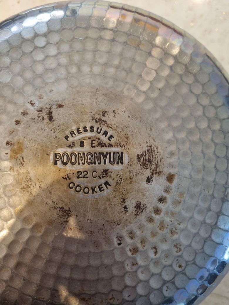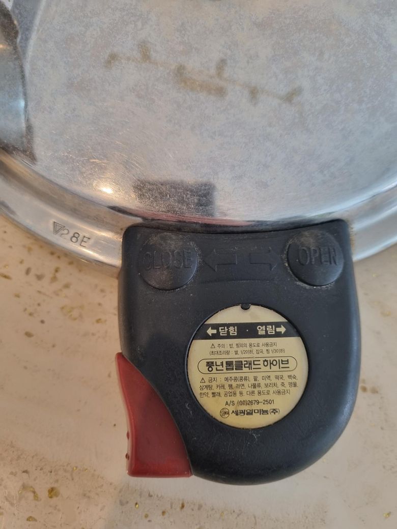 아주 오래된 풍년 압력솥입니다. 손잡이 부분에서 증기가 새서 패킹을 교체해보려고합니다. 어떤 걸 사야할 지... <풍년 톱클래드 하이브>라고 손잡이 부분에 스티커가 붙어 있구요, 바닥에는 8E도 써있고, 22C도 쓰여있네요.