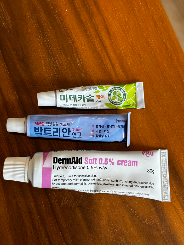 붉어진 반응 외에는 수포 등의 변화는 없으니 1도 화상이라 생각할 수 있겠습니다. 화상연고를 바르시는게 도움이 되는데, 사진의 연고 중에는 마데카솔을 바르시기 바랍니다.