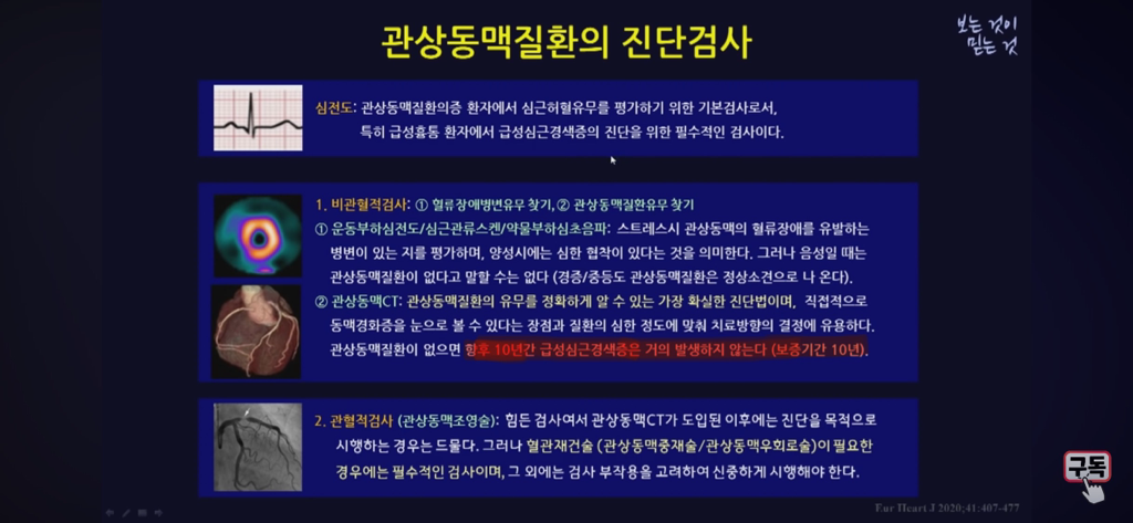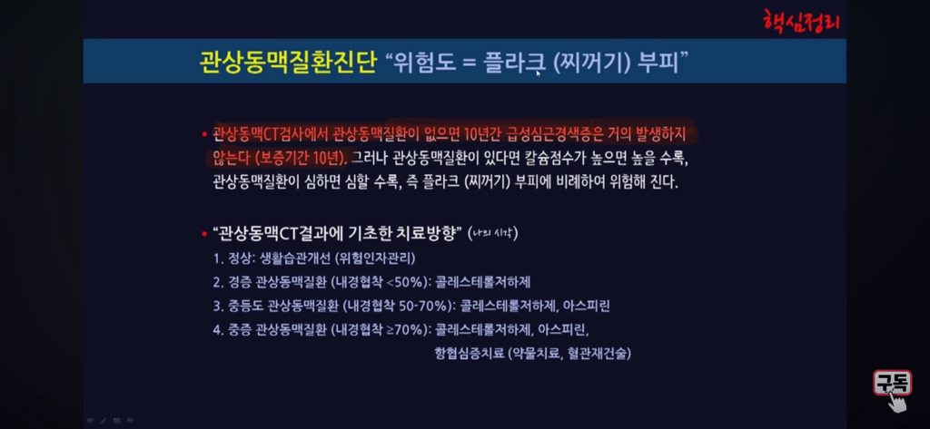 1. 작년('23년) 관상동맥조영술CT를 촬영하여 이상없음을 진단 받았습니다. 하지만 운동 시 흉통 등 증상이 지속 있어, 검사를 다시 받고 싶은데 조영술CT 상에 이상없음으로 진단될 시 향후 최소 몇년동안 결과 보증이 되는지 의학적인 기준이 궁금합니다.(U의대 모 심장내과 교수님 유튜브 강의에서 관상동맥CT조영술 결과 이상이 없으면 향후 10년 동안은 급성심근경색이 거의 발병 하지 않는다라고 말씀하셨습니다.)