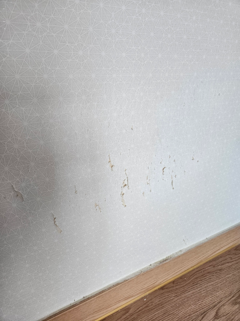방3/화2 아파트 인데 3-4평짜리 거의 사용하지 않은 작은방에 벽지가 가구로 인해 훼손이 됐어요