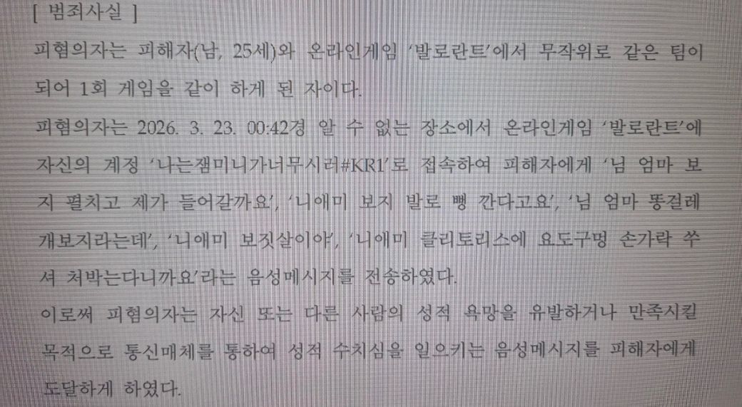 시작은 제가 오맨이 경쟁에서 게임을 제대로 안하고 제가 21살여자인데 마이크상으로 남자초등학생처럼 들리거든요 그래서 자꾸 저한테 겜못한다 잼민이네 어쩌구 저쩌구 시비걸고 그래서 제가 그만하라고 화내면서 그냥 니엄마 똥걸레 이랬거든요