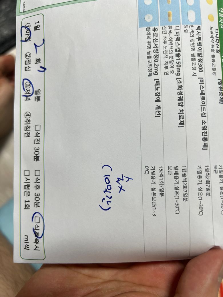 1월 25일 세번째진료 (다른원장님계셔서 그분한테 진료봄, 어제까지 근무해서 조금땡기긴한데 괜찮다고 함 진료볼땨 ,, 그래서 의사쌤이 괜찮다하니 컨디션조절잘하고 푹쉬라함 오늘부터 10일연휴이니 저 역시도 이번엔 푹쉬려고 휴가안감 집에서 휴식예정 ) 병원과 집이 거리가머니 나중에 비상용으로 혹시 증상재발하거나하면 먹게 일주일분 처방해달라함 , 티니다진정 처방