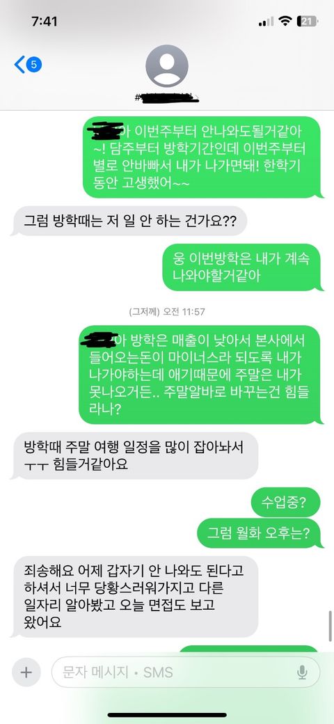 방학때 일 안하는 것인지, 즉 근로계약이 종료되는 것인지에 대한 문의에 그렇다고 답을 하셨기 때문에 해고 통보로 보입니다.