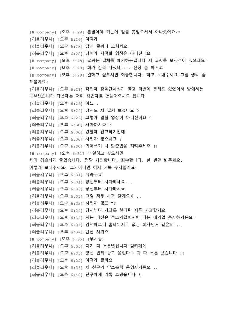 카카오톡 대화내용을 올려드립니다 !!
