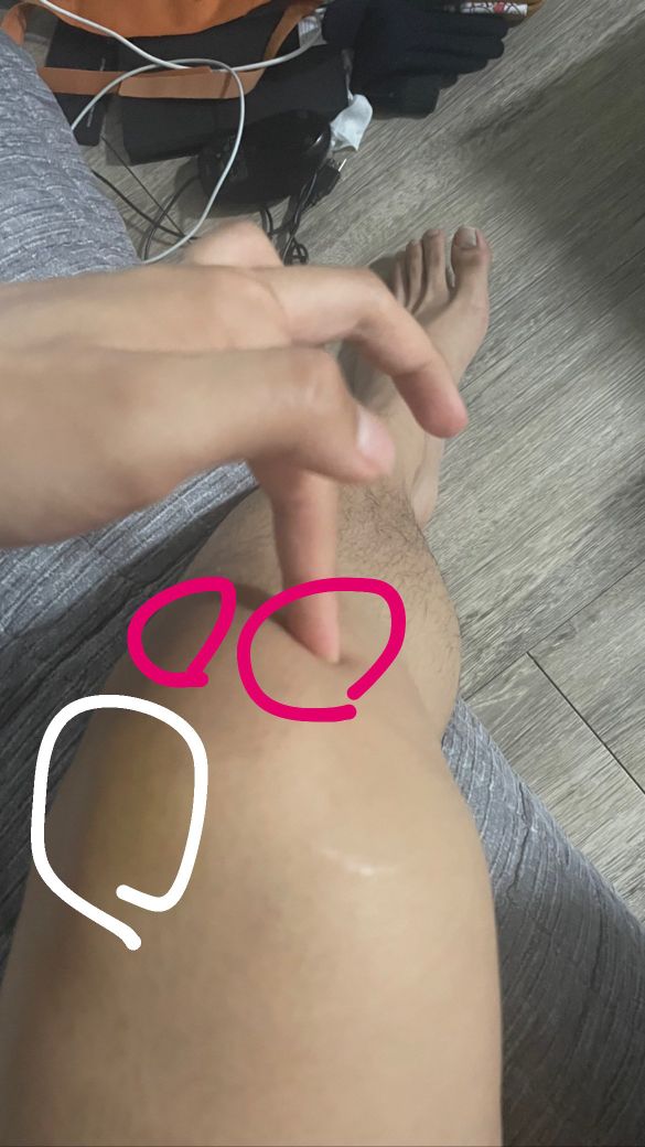 안녕하세요. 3주전 월요일에 점프를 하다가 벽에다가 하얀색 동그라미 부분 대략 왼쪽 상단부분을 박았습니다. 박은뒤로 빨간색 동그라미 부위와 그 가운데 힘줄? 같은곳에 통증이 찌릿하며 있습니다. 그리고 서서 양치나 샤워를 할때 무릎부분이 약해서 무릎이 전체가 흔들리는 느낌? 왼쪽 다리가 전체적으로 떨립니다. 그리고 두번째 사진에서 저렇게 무릎을 잡고 앞뒤로 흔들면 미세하게 무릎이 흔들립니다. 원래 흔들리나요? 아니면 문제가 생겨서 흔들리는 걸까요? 그리고 하얀색 부위를 다쳐서 빨간색 부위에 통증이 있을 수 있을까요? 십자인대아 연골파열 그런건 아닐까요?