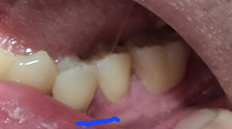 해당 부위는 약간 어두워 보이는 것이 정상이며 잇몸에 너무 과도한 자극이 가해지지 않도록 하는 것이 좋습니다.