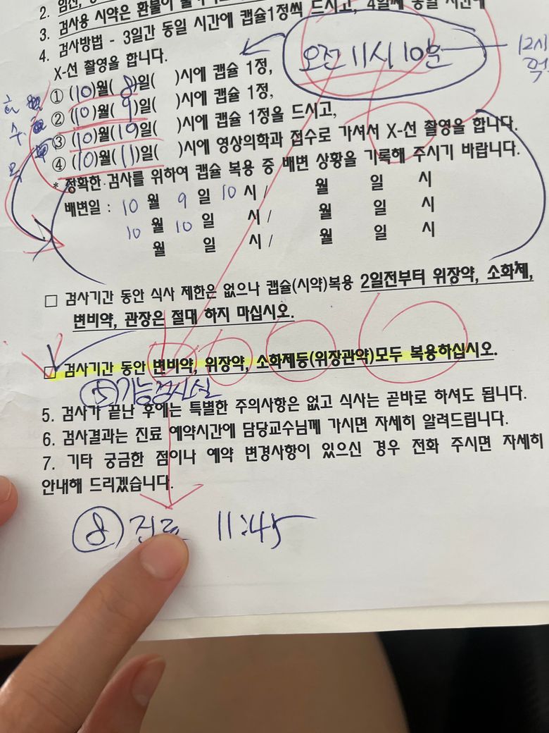 대장통과시간검사때문에 문의드릴게 있어서요!