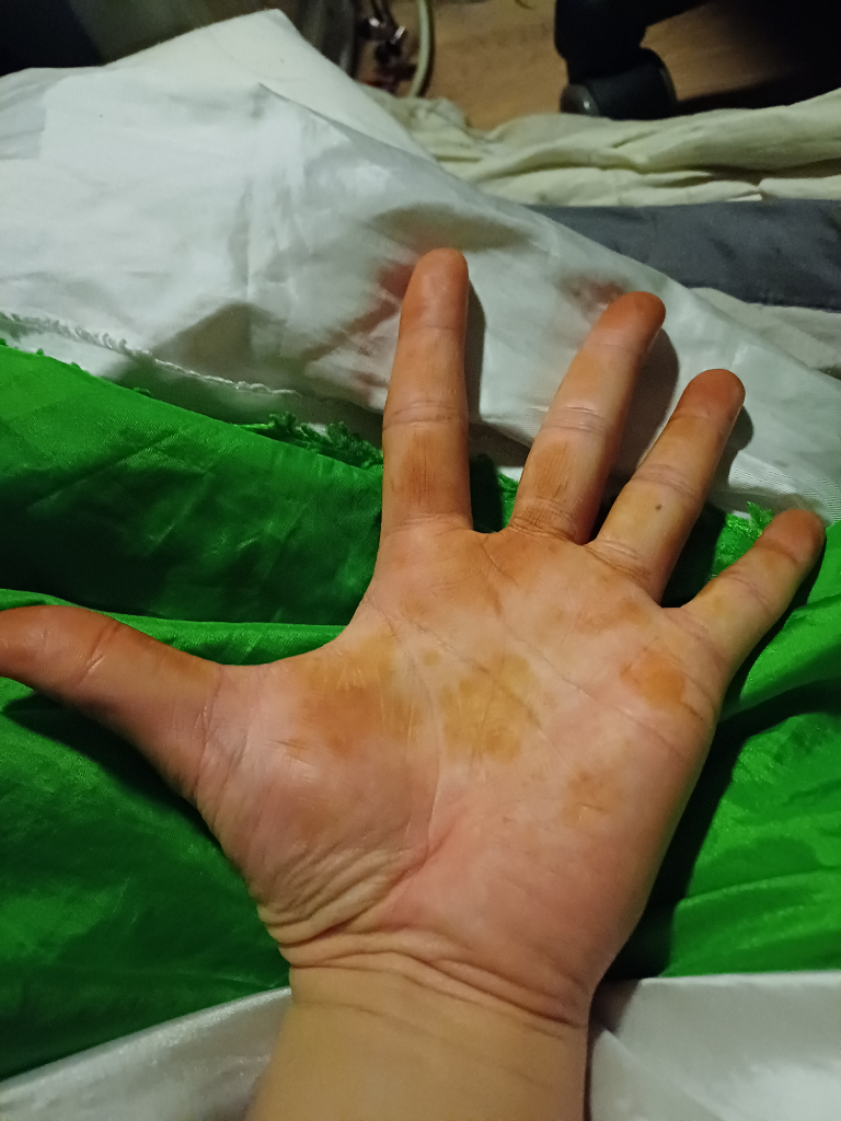 자다가 깨서 손바닥을 보니까 새빨가더군요.