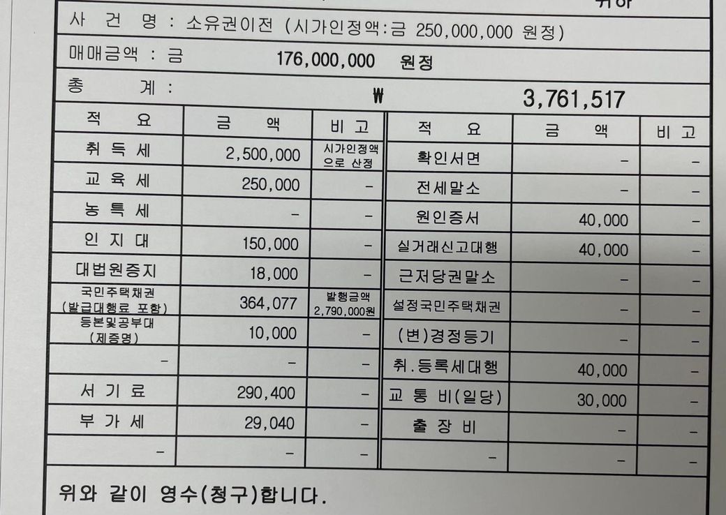가족거래이고 전액 현금 입니다