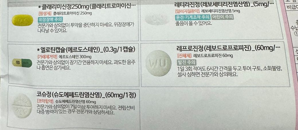 코감기와 축농증 초기 증상으로 약을 처방받았는데 어젯밤부터 목도 아프고 미열도 있는데 혹시 타이레놀을 같이 복용해도 될까요? 처방받은 약은 사진 첨부했습니다!