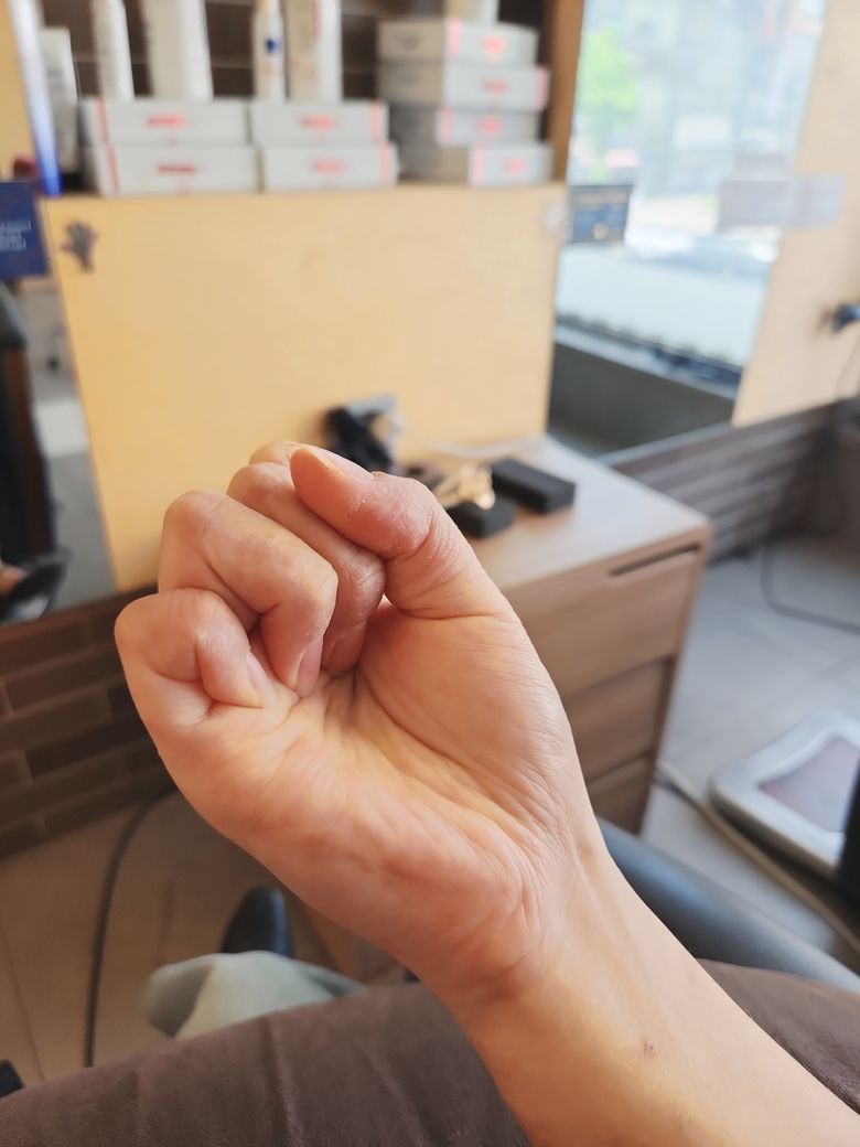 제가 다른 사람들보다 주먹이 덜 쥐어진다는 사실을 초등학생때 알았는데요 별 불편한 일 없이 지내서 신경 안쓰고 23세가 될때까지 잘 살았는데요 미용 일을 하다보니 한마디가 더 접혀야되는데 잘 접히지 않고 힘이 안들어가다 보니 불편하더라구요 왜 그런지 어떻게 해야되는건지 궁금합니다,,, 선천적으로도 이럴수있는건가용?!사진 한장 첨부하자면 주먹을 최대로 쥔게 이정도 입니다!