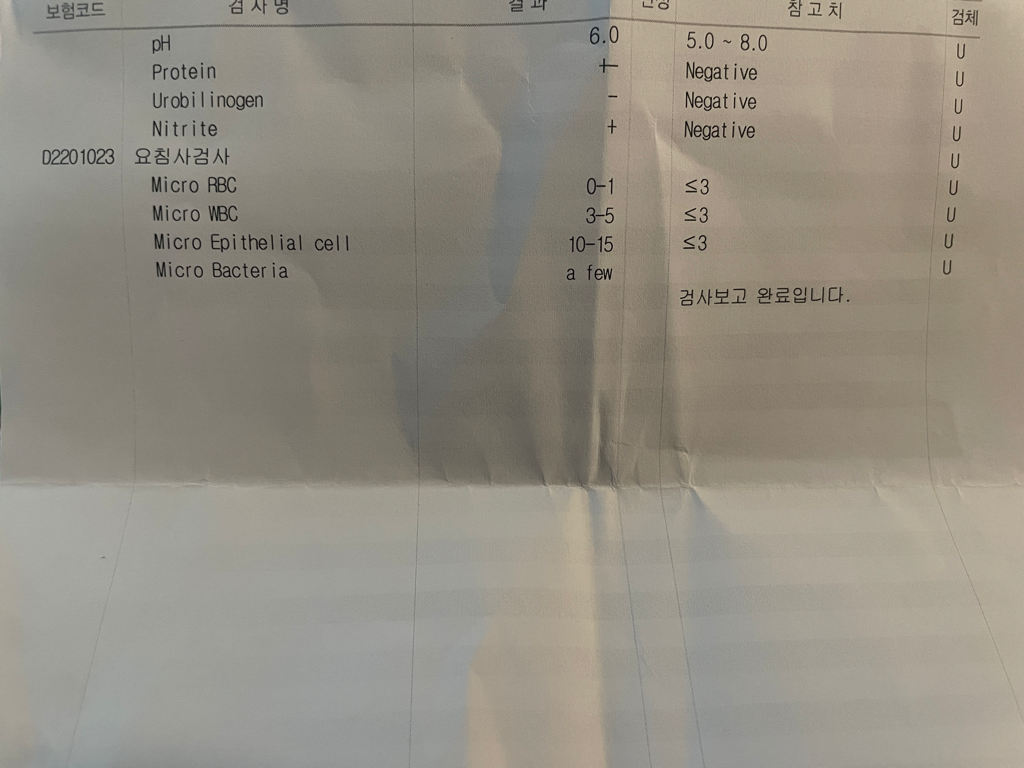 소변 검사에서 단백질이 미세하게 보인다고 나와있지만 상피세포가 많이 검출되었기에 이 또한 무의미합니다.