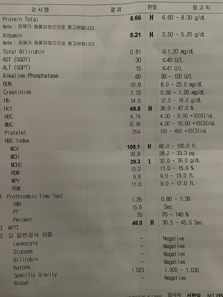 혈액검사상으로는 크게 문제되는 항목은 없는 것 같습니다