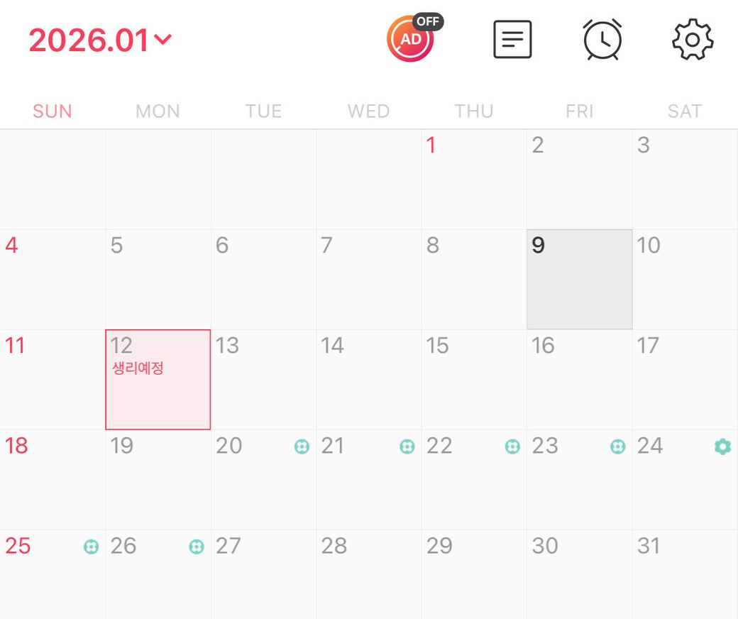 사진처럼 1/12가 생리 예정일인데 이 날부터 복용 시작하면