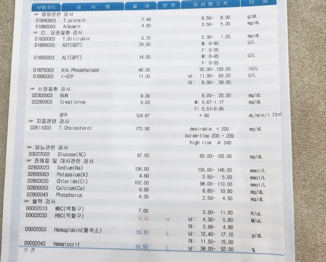 한달전에는 정상이었고 이번에 빈혈 추적 검사?? 하면서 피를 또 뽑았는데 적혈구 수치가 올라갔다고 뜨큰데