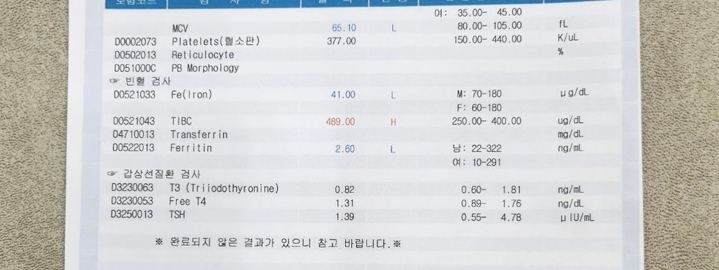 의사선생님은 야무말도 없으신데 괜찮은거 맞나용.....? ㅜㅜ 빈혈은 철분제 먹으면서 치료중입니다