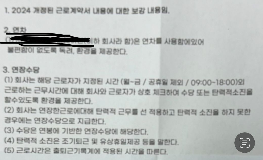 현재 야근은 한달에 4-5시간 정도 발생하며, 너무 바빠서 연차도 제대로 사용을 못 하고 있는 상황입니다. 노동청에 신고 하였을때 법적으로 문제 안 생기려고 작성 한 거 같아서 재작성 요청을 하였습니다.