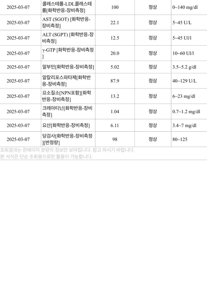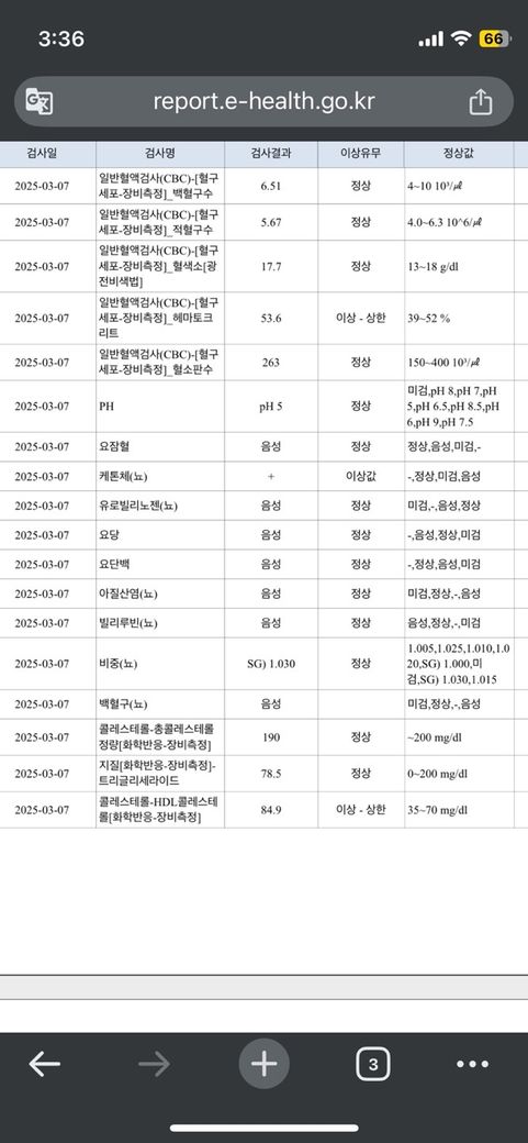 보건소에서 소변검사와 신장 간 당뇨검사 결과인데 봐주세요