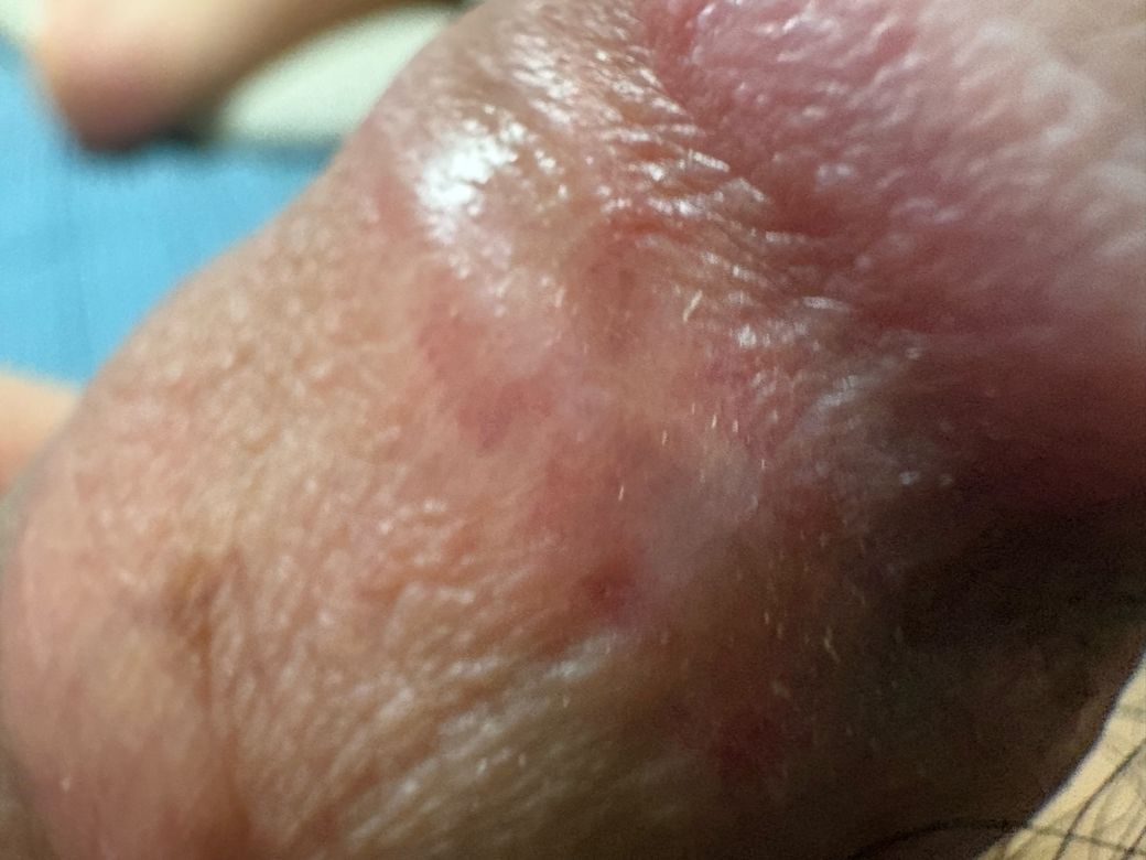 여친이랑 성관계 해본적없고 호기심으로 구강성교 두번정도 했는데 제일 최근이 일주일도 안되었습니다 포경한지는 4주정도 되었는데 이거 파인거처럼 보이는 부분이 있는데 혹시 매독 1기인가요? 걱정되어서 잠도 안옵니다 제발 도와주세요 학생이라 부모님에게 말하기도 뭐하고