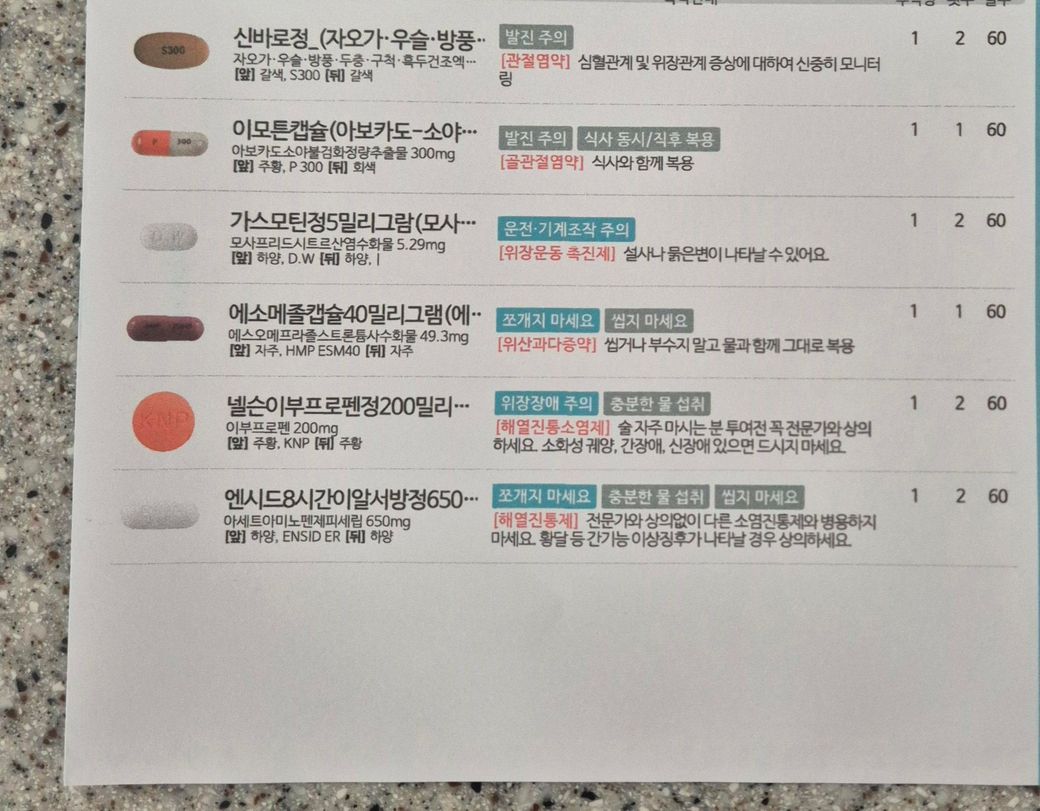 통증 때문에 반년 넘게 정형외과 약을 복용 중입니다.