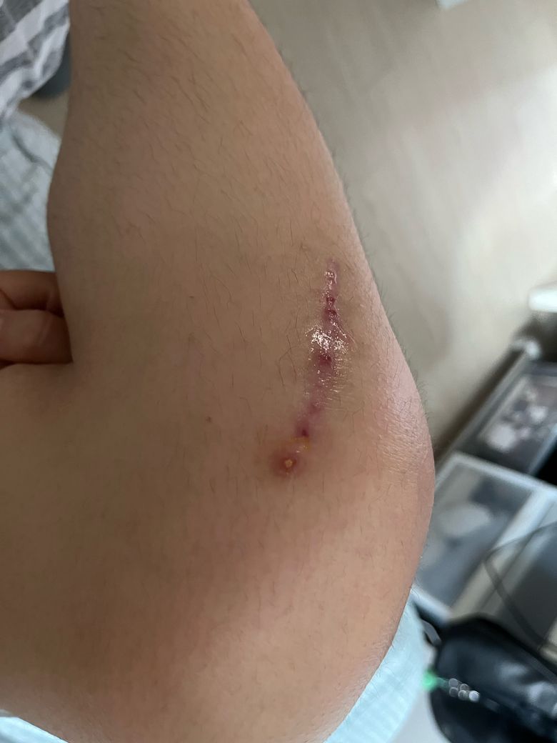 무릎 수술 후 봉합 상처 고름이 나옵니다