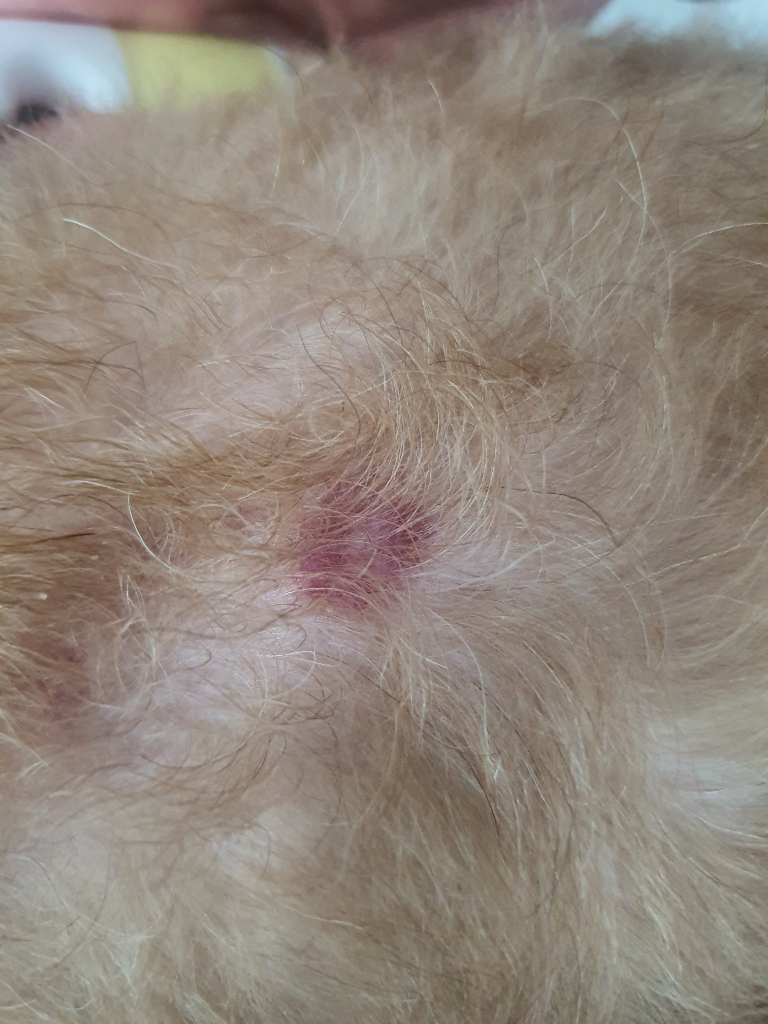 타겟 양상의 모양이면서도 출혈에 의한 멍과 유사한 모습을 보이고 있어 단순 염증으로 보기 어려울듯 합니다.